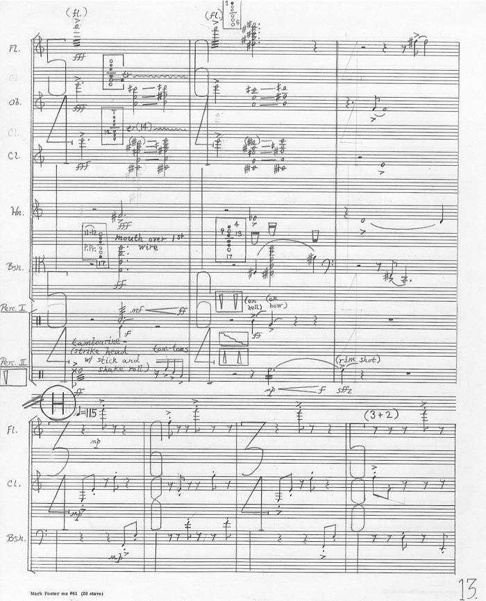 for woodwind quintet and two percussion (1995) - score sample
